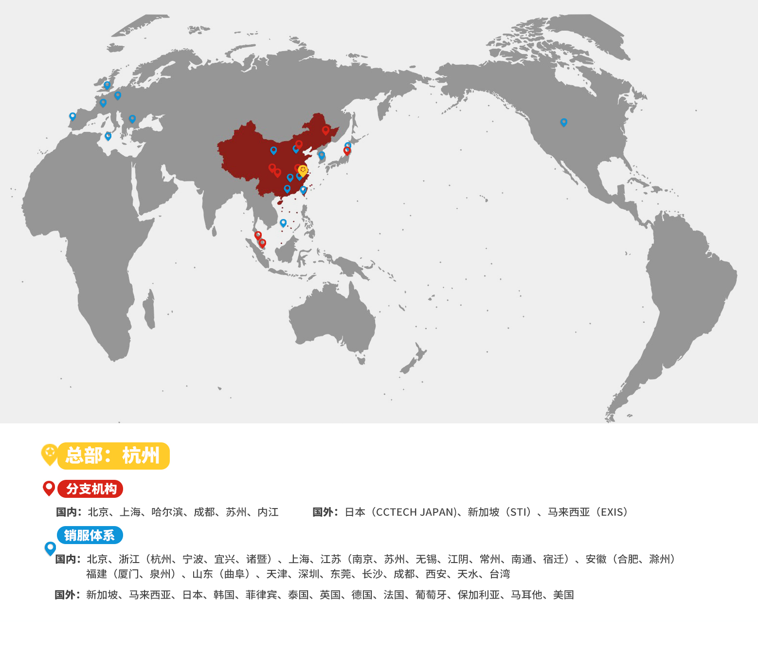 公司總部位于杭州市濱江區(qū)創(chuàng)智街500號(hào)。目前,公司員工超4000人,研發(fā)人員占比50%以上,在日本、上海、北京、成都、哈爾濱、蘇州、內(nèi)江、長(zhǎng)沙、合肥等地設(shè)有分支機(jī)構(gòu),并先后并購(gòu)新加坡AOI設(shè)備制造商STI、日本SATO公司半導(dǎo)體事業(yè)部和馬來(lái)西亞測(cè)試設(shè)備制造商EXIS。在深耕中國(guó)大陸、臺(tái)灣地區(qū)市場(chǎng)的同時(shí),公司海外市場(chǎng)已開(kāi)拓至美國(guó)、英國(guó)、德國(guó)、韓國(guó)、新加坡,馬來(lái)西亞、泰國(guó)、菲律賓等國(guó)家,逐步形成全球化布局。